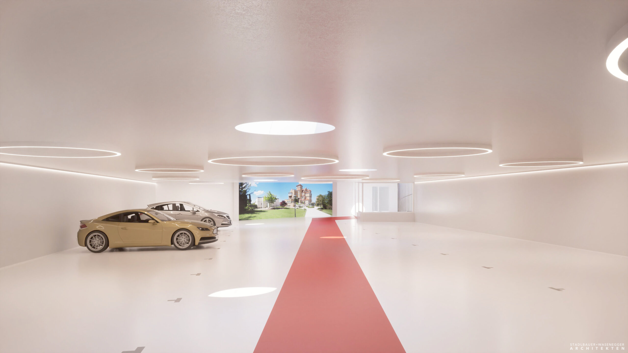 Die neue Tiefgarage des Hotel Schloss Mönchstein*****s ist ein Meisterwerk moderner Architektur. Die freitragende Decke ohne störende Säulen ermöglicht müheloses Ein- und Ausparken, während großzügige Lichtkuppeln den Raum in natürliches Tageslicht tauchen.