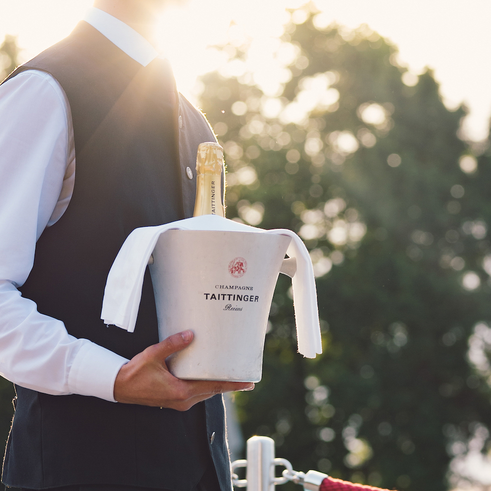 - Bequeme Sonnenliegen direkt am Pool – auf Wunsch auch in unserem Schlosspark